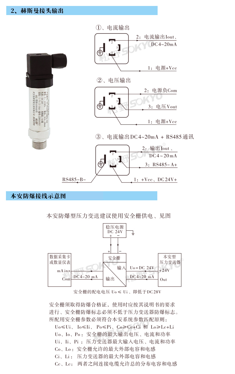 5、優(yōu)點:全不銹鋼結構、或鑄鋁外殼、體積小巧、重量輕、安裝方便、接線簡單、實用性強。采用
