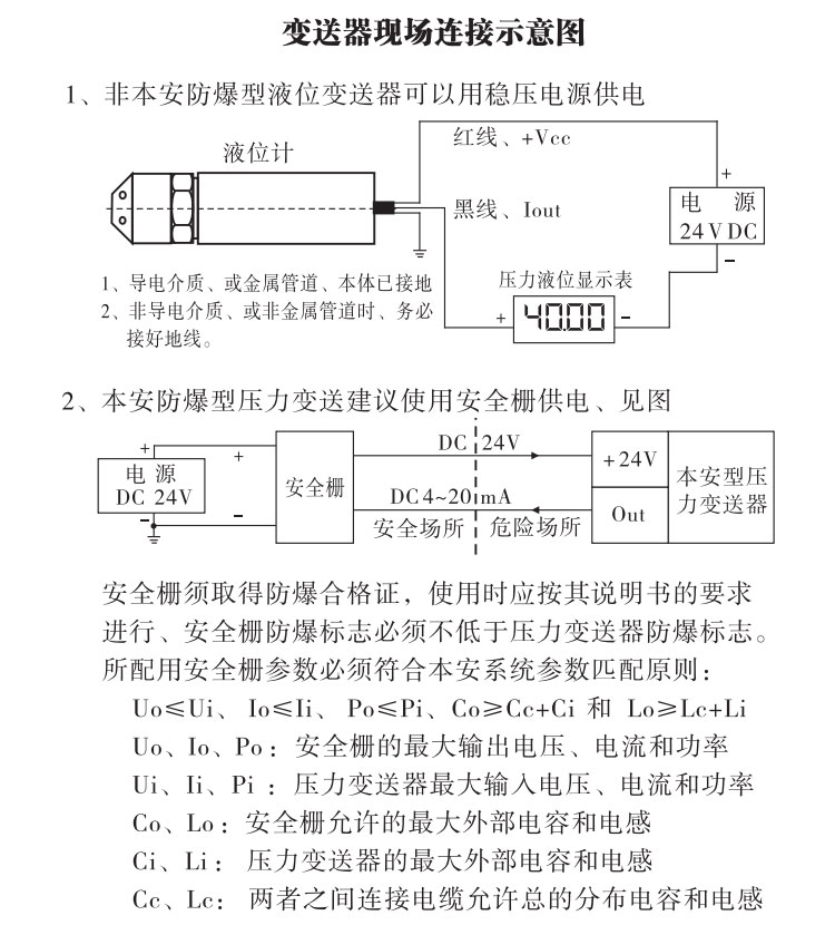 本安參數:Ui = 28V DC、Ii = 93 mA