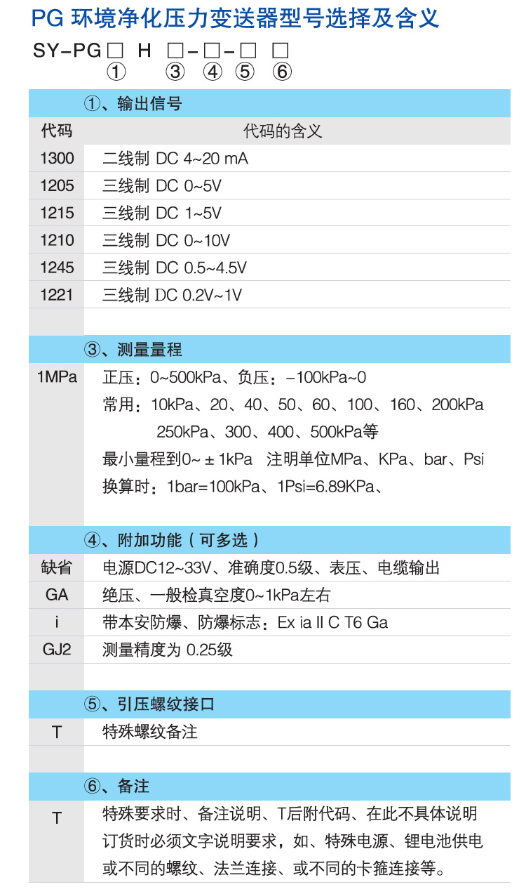 專用壓力變送器,PG5300H環境凈化壓力傳感器選型圖