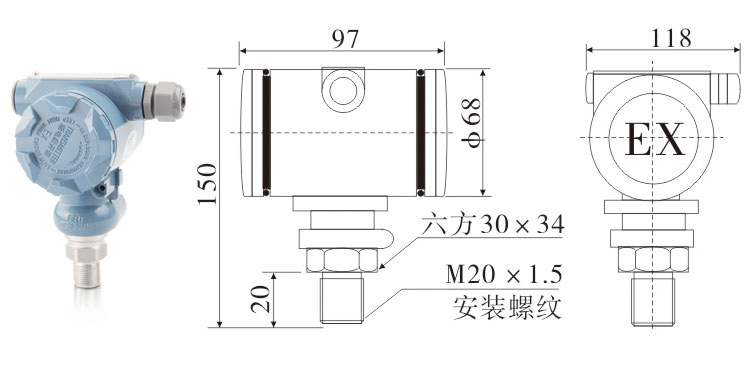 3、確定螺紋接口:常用壓力接口為M20X1.5,如果在特殊場合下使用應考慮防爆以及防護等級。