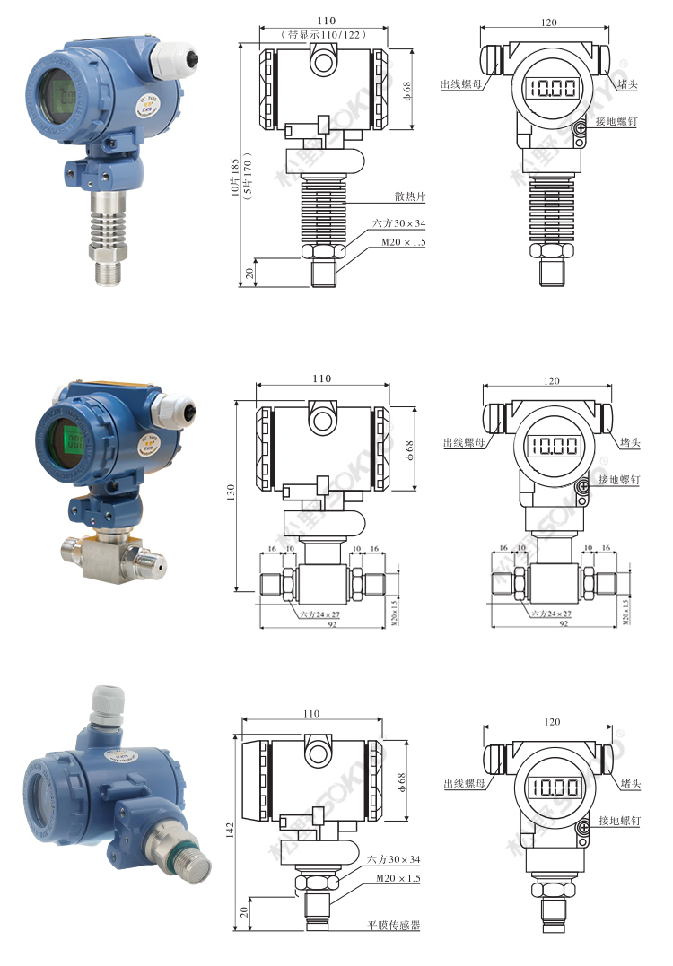 3、確定螺紋接口:常用壓力接口為M20X1.5,如果在特殊場(chǎng)合下使用應(yīng)考慮防爆以及防護(hù)等級(jí)。