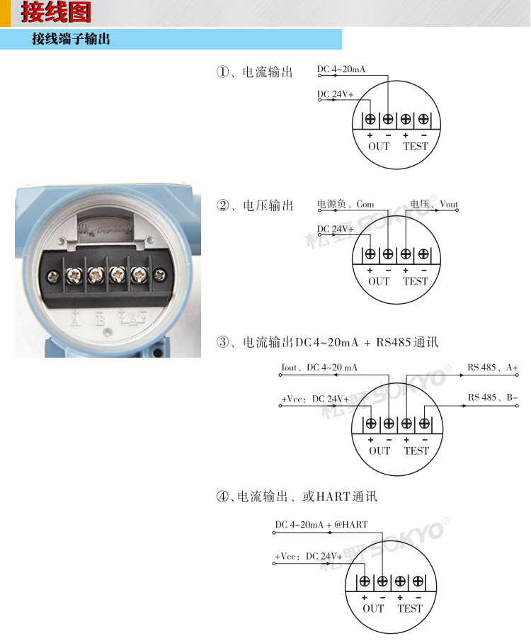 2、確定輸出方式:通常標(biāo)準(zhǔn)輸出的4-20mA和0-5V輸出信號(hào)較為常見(jiàn)。