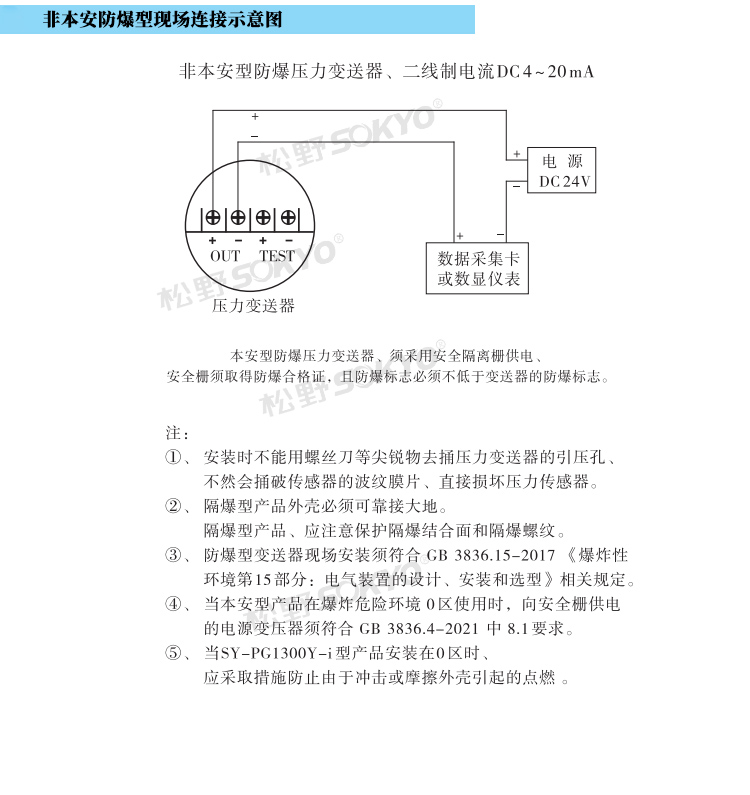 7.防爆型變送器現(xiàn)場(chǎng)安裝須符合GB3836.15-2000《爆炸性氣體環(huán)境電氣設(shè)備第15部分: